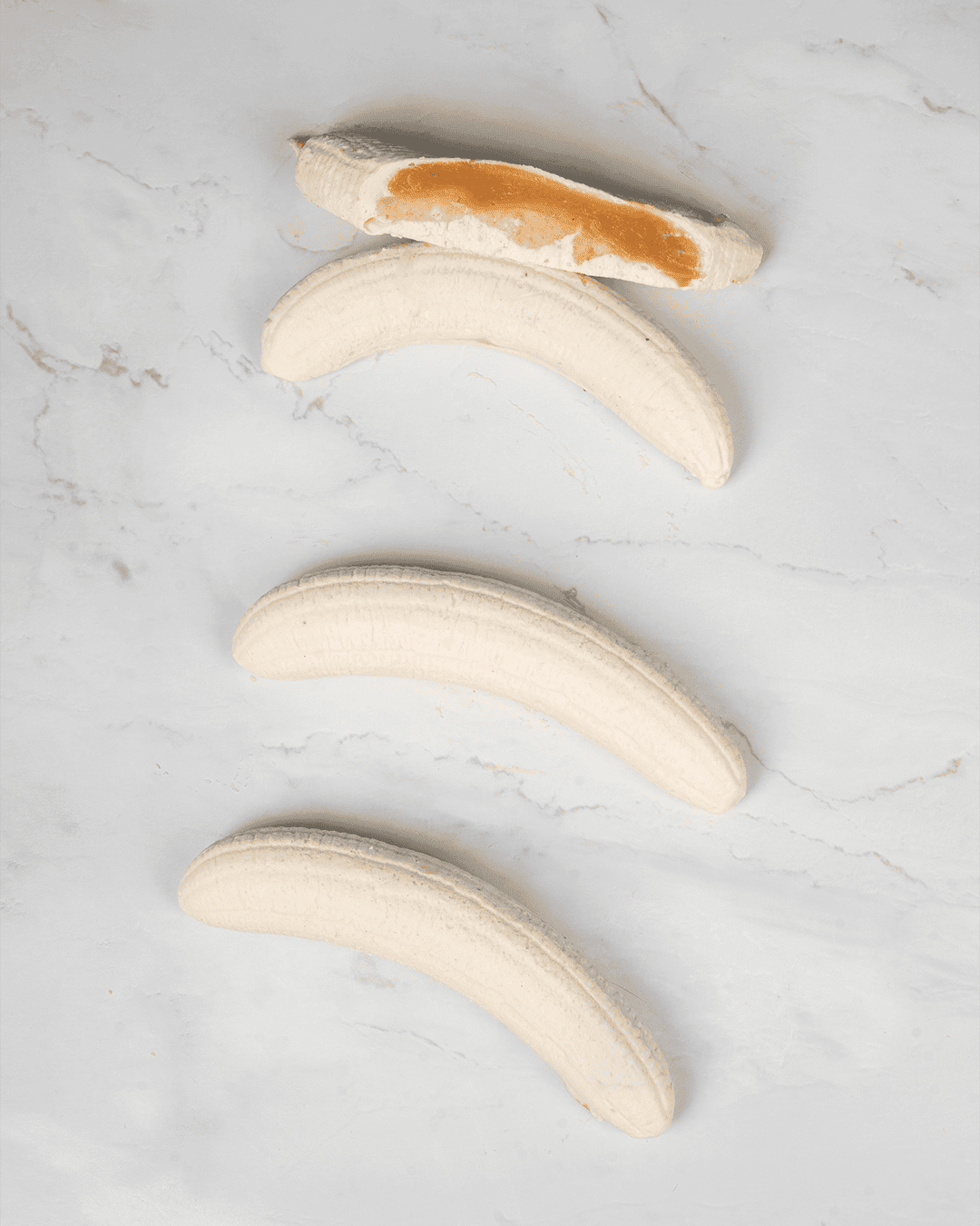 Mousse banana e cioccolato bianco, tartare di banana, caramello morbido alla vaniglia