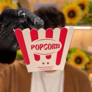 pop corn realistico caramellato Ganache al pop corn, pralinato di mais e mandorle tostate, pop corn